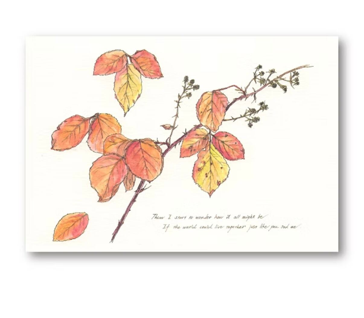 イギリスの散歩道や農道に自生するブラックベリーを描いたポストカード。