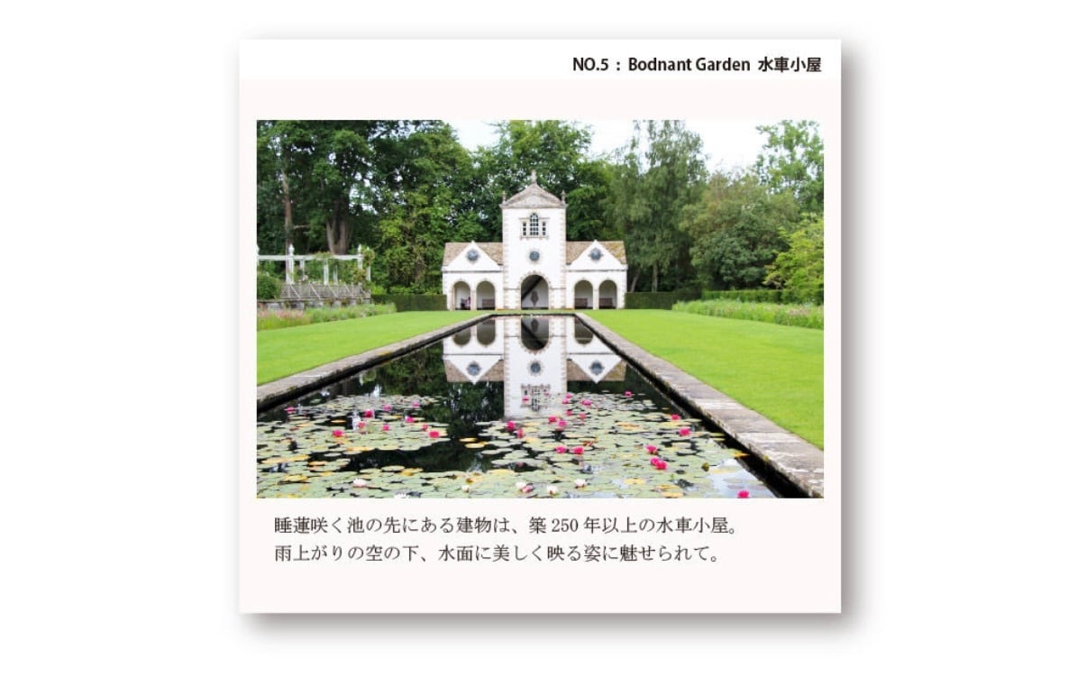 世界に誇る名園『ボドナント・ガーデン』では、オールドローズや睡蓮、フューシャなどの花々が咲き誇ります。